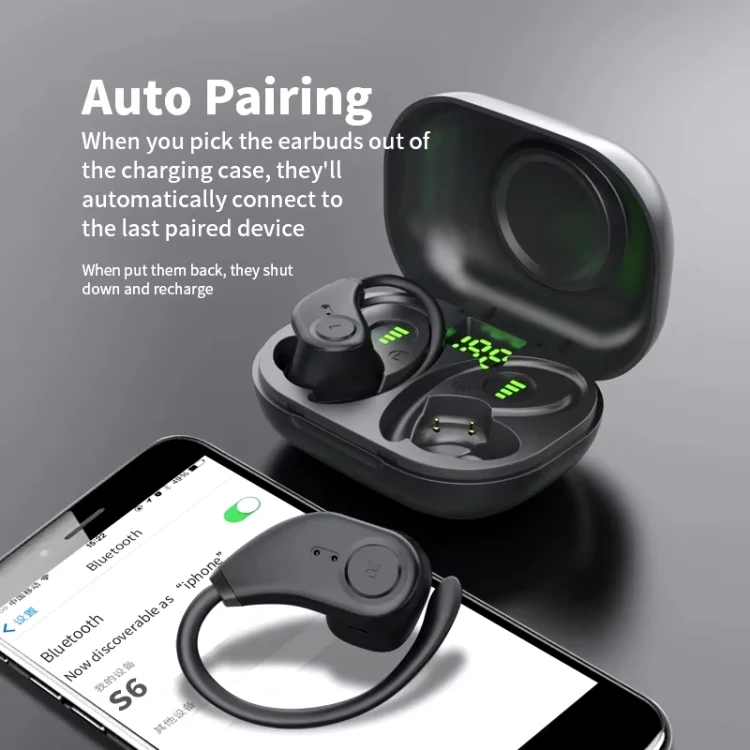 Bluedio S6 Sports Wireless Stereo Bluetooth Earphones With Battery Level Display Charging Bin, S6