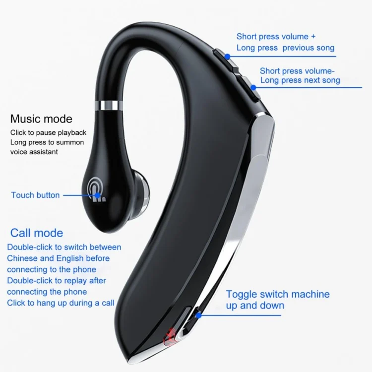 DS800 Bluetooth 5.0 Universal Hanging Ear Style Business Sports Wireless Bluetooth Earphone, Classic Version, Classic Version (Black), Classic Version (Silver)