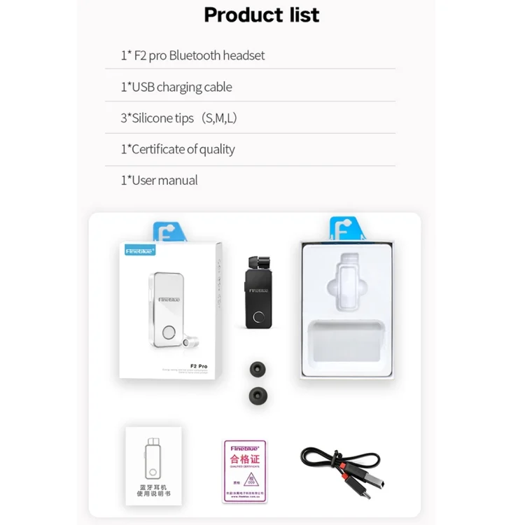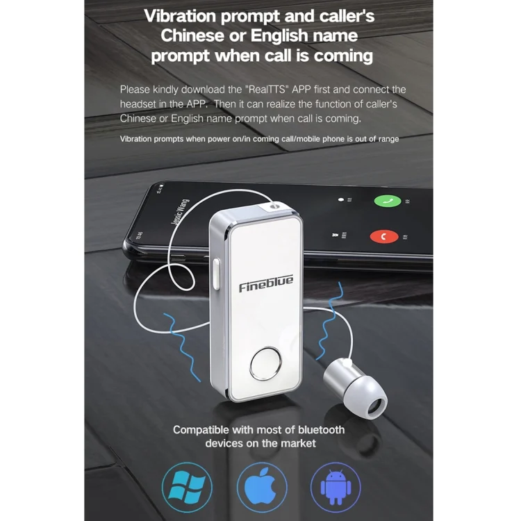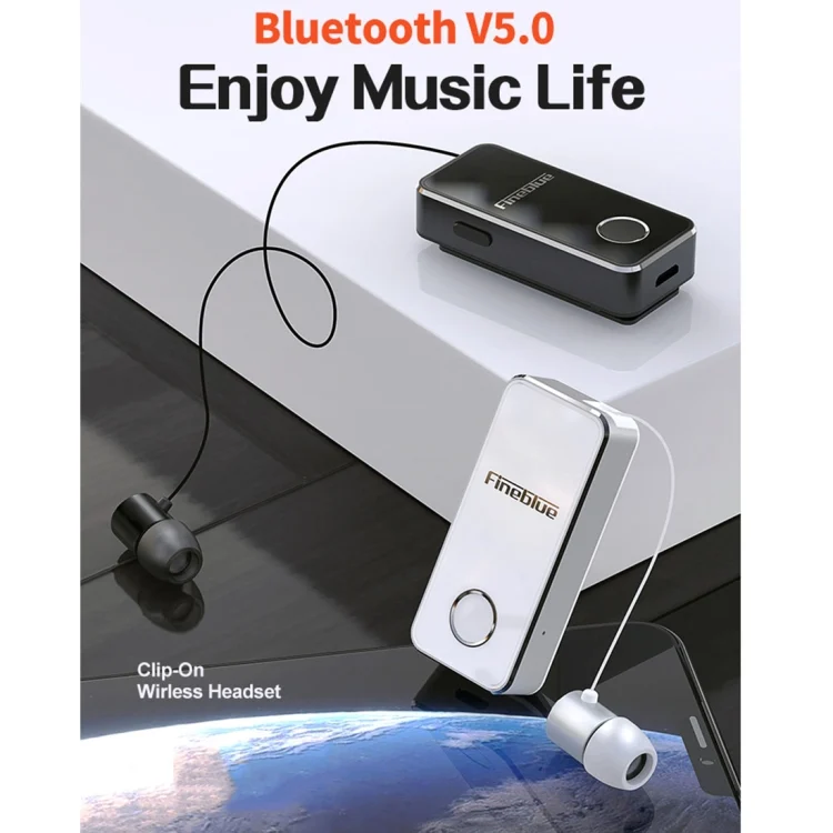 FineBlue F2 Pro Wireless Bluetooth V5.0 Earphone Hands-Free Vibrating Alert Wear Clip Earphone