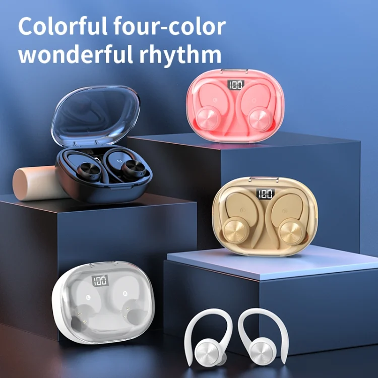 Stereo Hanging Ear Bluetooth Earphones With Digital Display Charging Compartment