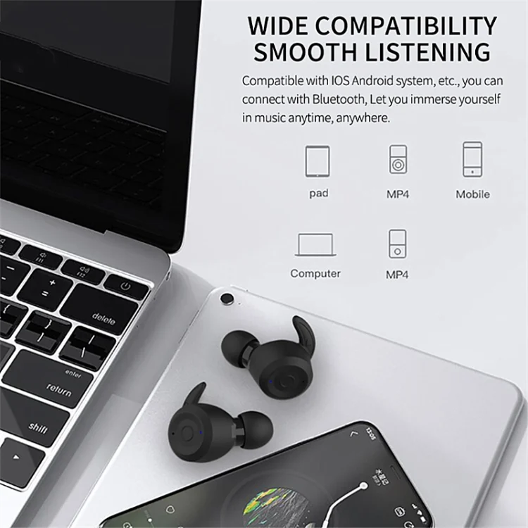 7. Automatic pairing, one-button control, take out the mobile phone from the charging box, the left and right earphones are automatically connected, and pair with the mobile phone; put in the charging box and automatically shut down, the operation is simple and quick.