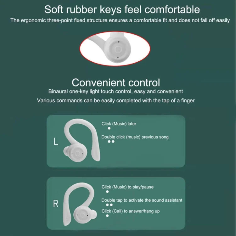 2. The two wearing methods can be switched at will, two different ear hooks, close to the ear canal, need to cooperate The soft silicone ear hooks are comfortable to wear and not easy to fall off.