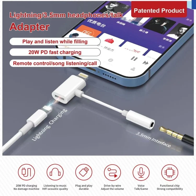 1. The 3.5mm interface supports all 3.5mm devices such as calls, music, selfie sticks, USB shields, etc., and is compatible with all iOS systems.