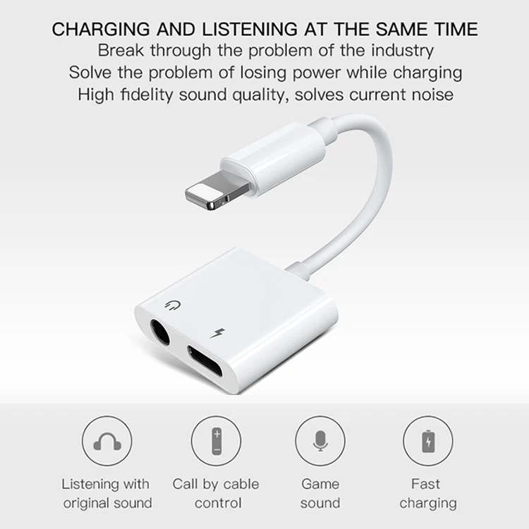 1. 2 in 1 design, support iPhone 7/8/X/XS/XS MAX/XR charging and listening by 3.5mm earphone at the same time