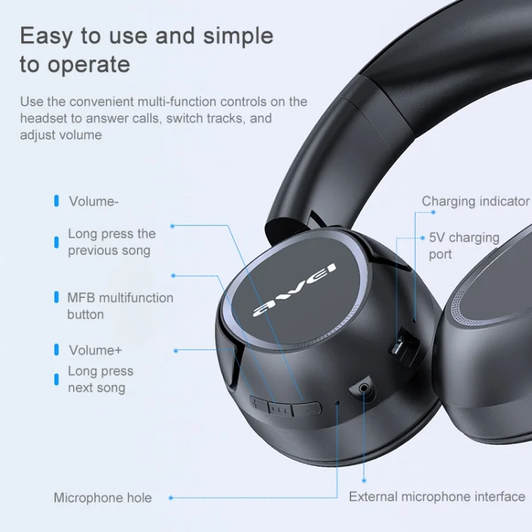 AWEI A770BL Bluetooth 5.0 Stereo Wireless Bluetooth Headset