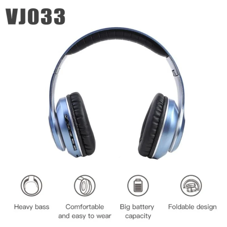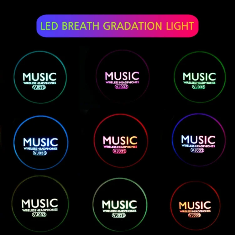 VJ033 Multi-function Upgrade Bluetooth 5.0 Headset Stereo Wireless LED Microphone FM Radio Headset