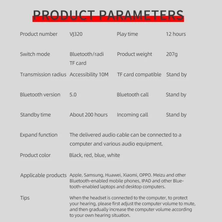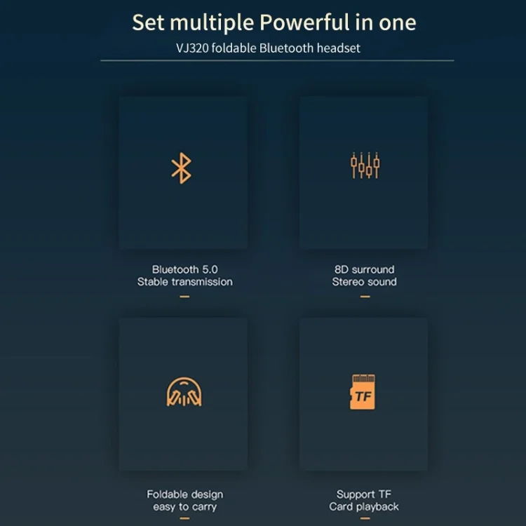 VJ320 Bluetooth 5.0 Head-mounted Foldable Wireless Headphones Support TF Card with Mic, VJ320 Black, VJ320 Blue, VJ320 Red, VJ320 White