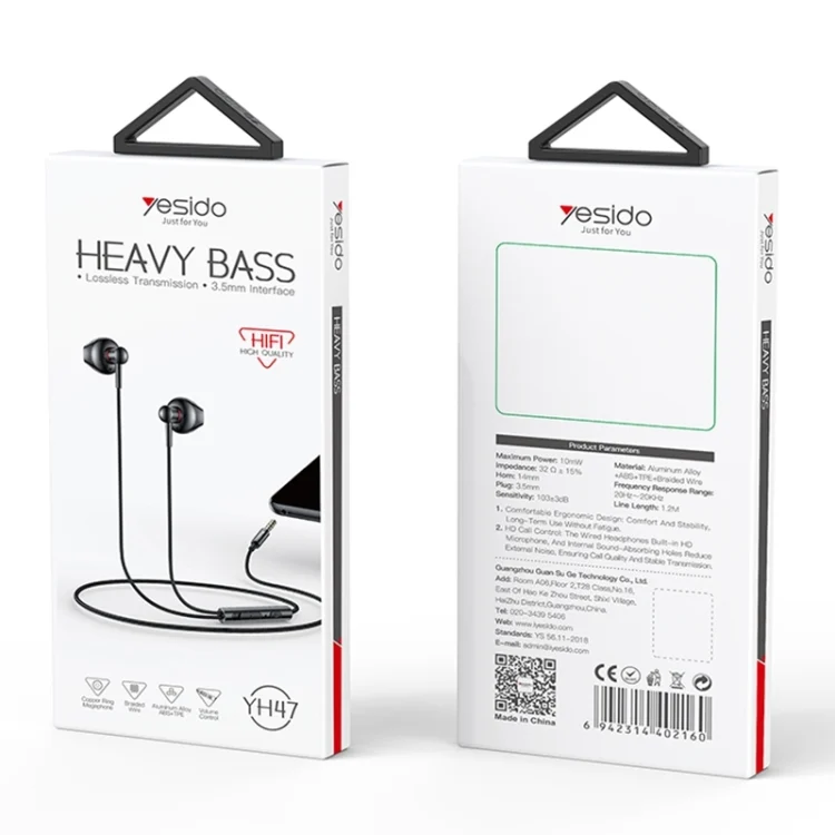 Yesido YH47 3.5mm Metal Line-Control In-Ear Wired Earphone, Length: 1.2m, YH47