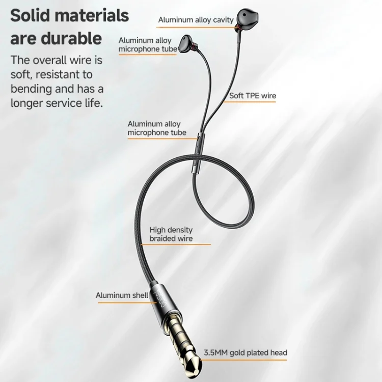 3. Main line braided wire + TPE secondary line, alloy interface, efficient lossless sound transmission.