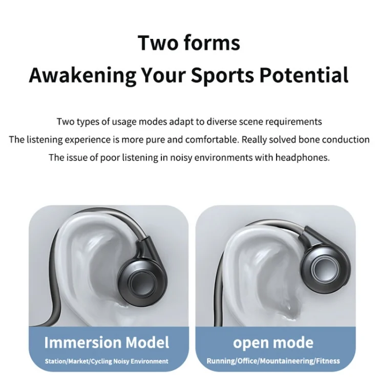 6. Bone conduction technology, using bones to transmit sound, no need to plug in the ear without hurting the eardrum, comfortable and healthy