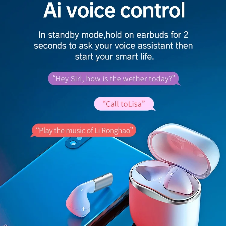 Light sensor in-ear detection, Air true wireless master-slave switch, Ai voice control with one touch, adjustable volume, can cut songs