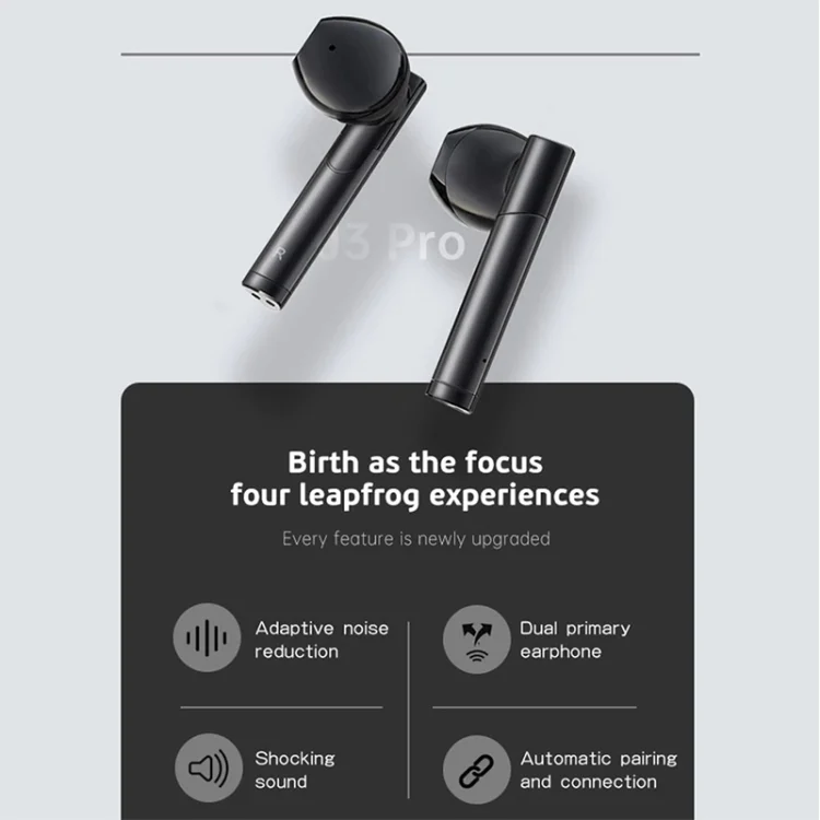 6. General: TWS automatic pairing, automatic connection back to stereo surround sound field, heavy bass Air true wireless master-slave switching, Ai voice control key touch, adjustable volume, can cut songs