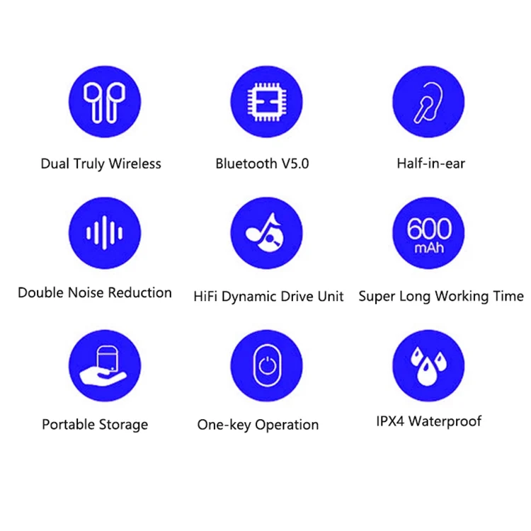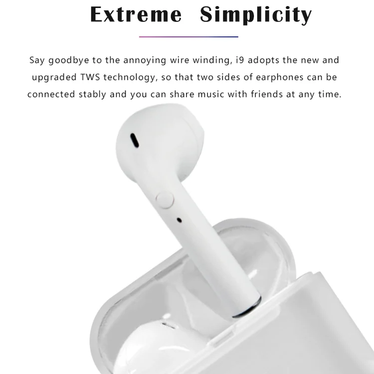 i9 Wireless TWS Sport Bilateral Stereo Bluetooth 5.0 Headset with Charging Box, Push-button Version, Push-button Version