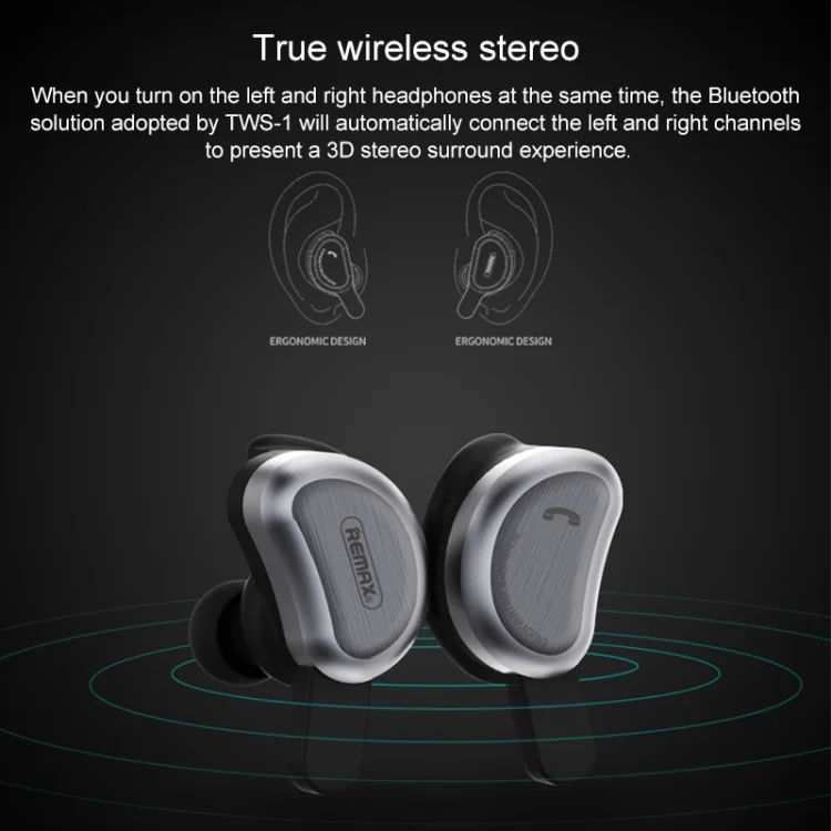 REMAX TWS-1 Half Moon Shaped Bluetooth 4.2 Wireless Bluetooth Earphone with Charging Box, TWS-1 Gold, TWS-1 Tarnish