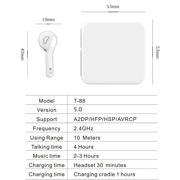 T88 Mini Touch Control Hifi Wireless Bluetooth Earphones TWS Wireless Earbuds with Charger Box