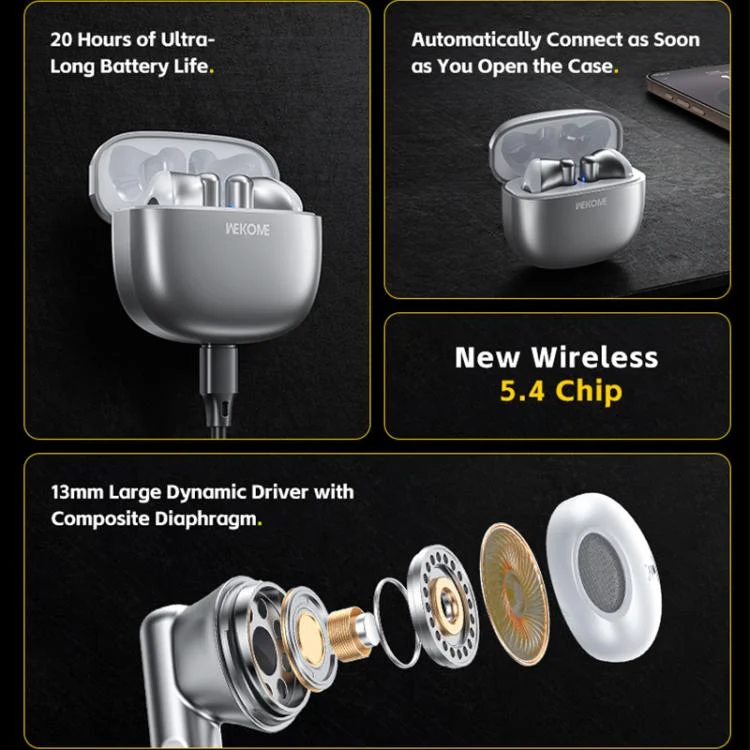 2. 13mm composite diaphragm driver, wide soundstage with impressive bass