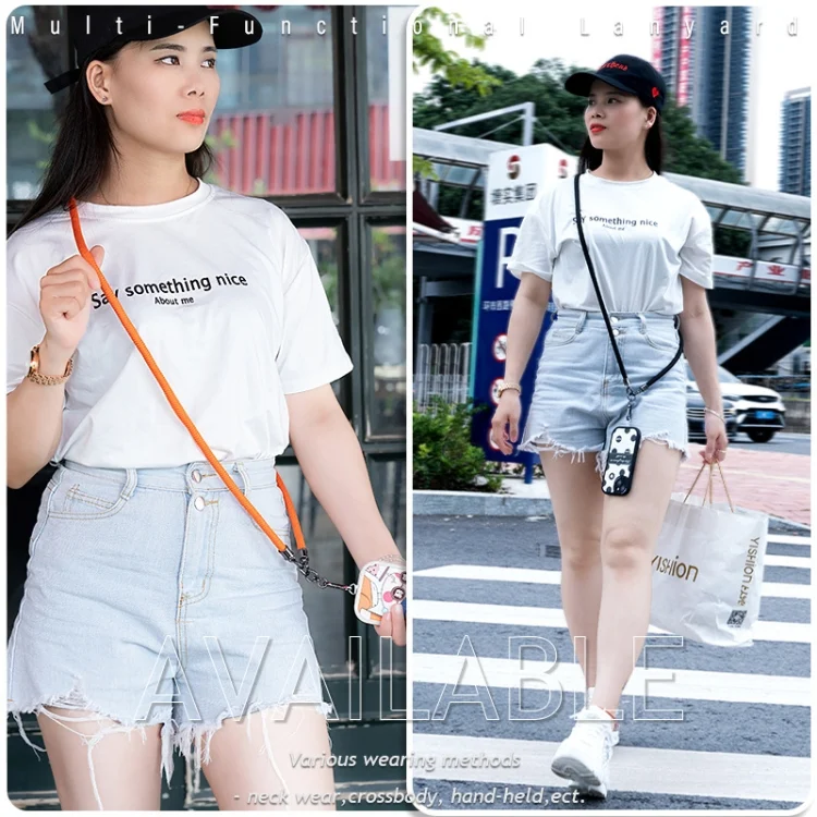 Mobile Phone Mountaineering Rope Lanyard Can Be Hung Neck Or Crossbody, Black, Orange, Sky Blue, Red, Gem Blue, Violet, Brick Orange