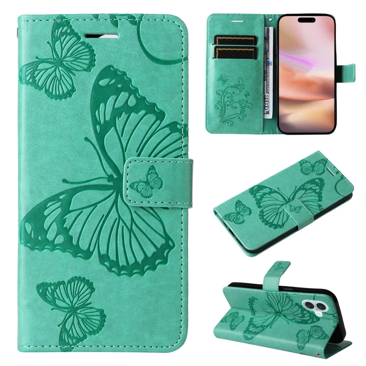 3D Butterfly Embossed Pattern Flip Leather Phone Case, For iPhone 16 Plus, For iPhone 16
