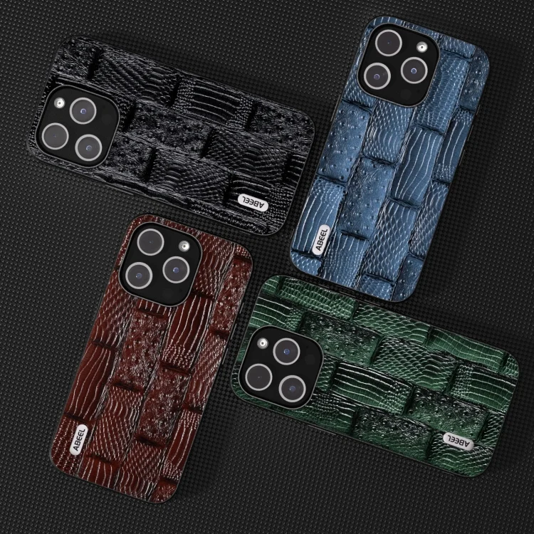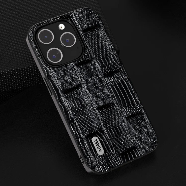 ABEEL Genuine Leather Mahjong Pattern Black Edge Phone Case, For iPhone 15 Pro Max, For iPhone 15 Pro, For iPhone 15 Plus, For iPhone 15