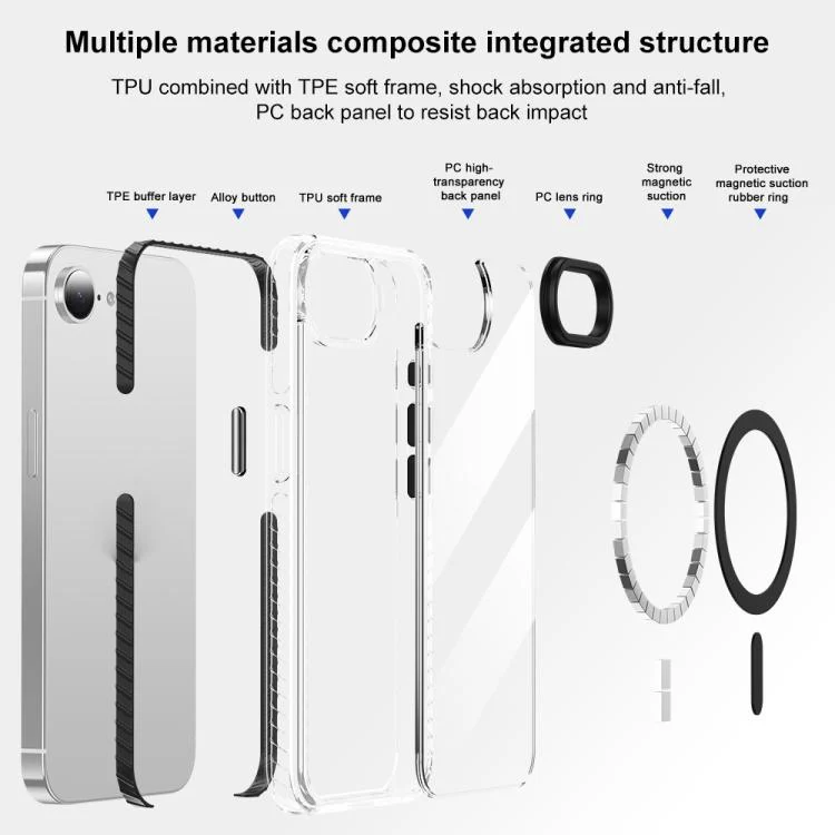 Airbag TPU + TPE+ PC Clear MagSafe Phone Case, For iPhone 16e