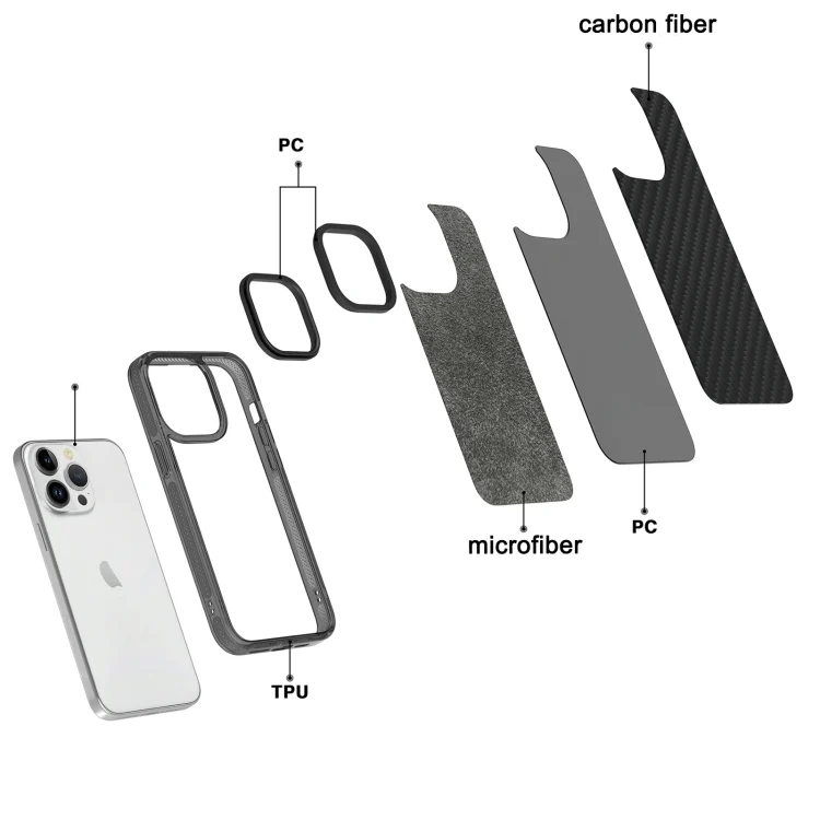 1. Made of TPU+PC+carbon fibre material, it is tough and durable.