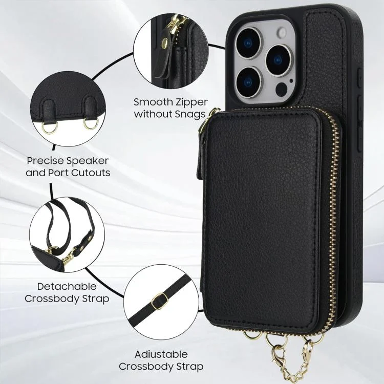 AwQuer 2 in 1 Crossbody Wallet Leather Back Phone Case, For iPhone 15 Pro Max, For iPhone 15 Pro