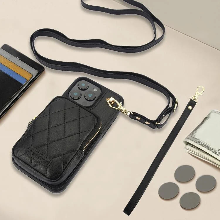 AwQuer Crossbody Zipper Wallet Bag Litchi Leather Phone Case, For iPhone 12 / 12 Pro, For iPhone 12 Pro Max