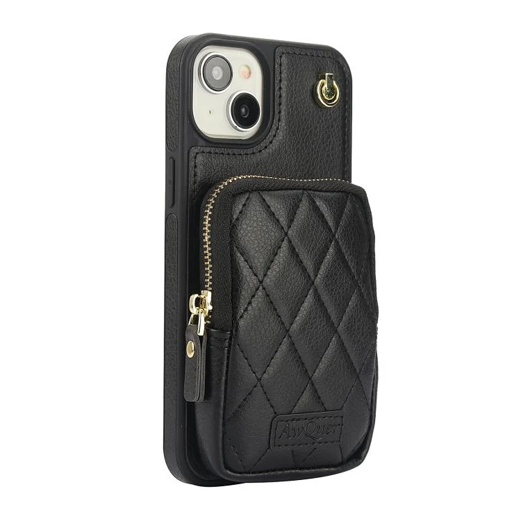 AwQuer Crossbody Zipper Wallet Bag Litchi Leather Phone Case, For iPhone 14 Plus, For iPhone 14 / 13