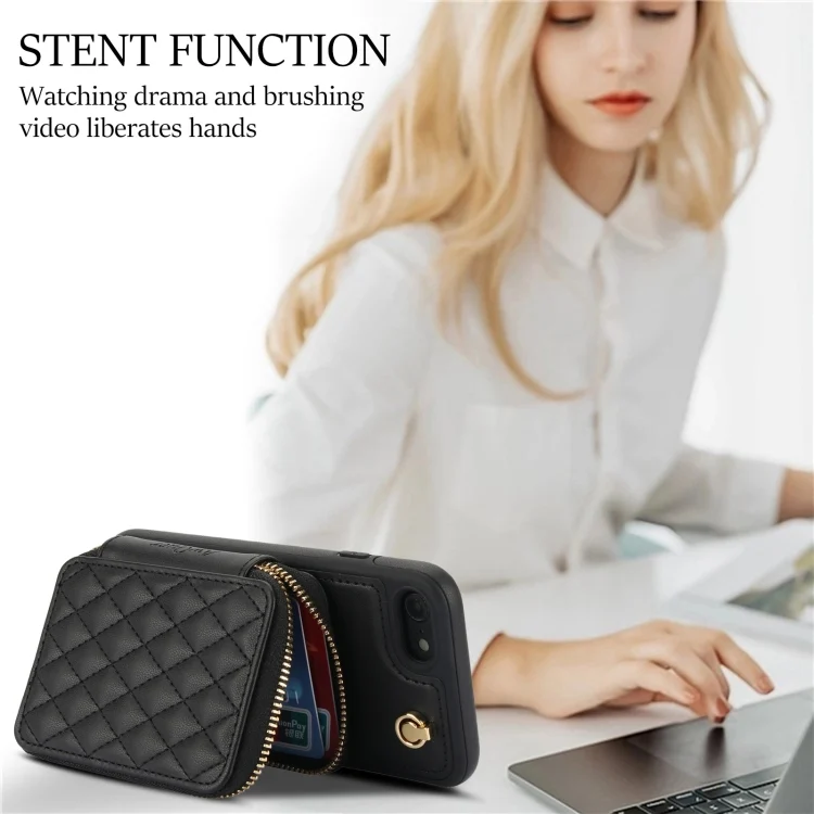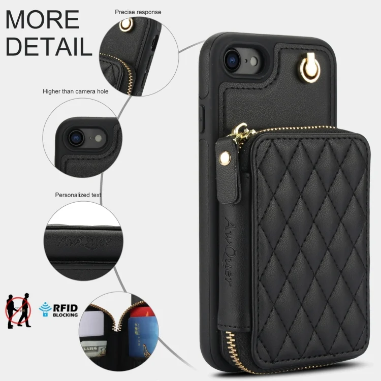 AwQuer Crossbody Zipper Wallet Rhombic Leather Back Phone Case, For iPhone 7 / 8 / SE 2022, For iPhone 13 Pro Max