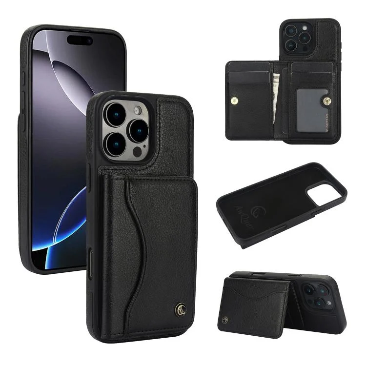 AwQuer Horizontal Flip Card Bag Holder Leather Phone Case, For iPhone 16 Pro Max, For iPhone 16 Pro, For iPhone 16 Plus, For iPhone 16