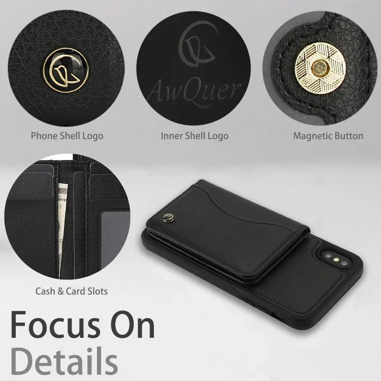 AwQuer Horizontal Flip Card Bag Holder Leather Phone Case, For iPhone X / XS, For iPhone XR, For iPhone XS Max, For iPhone 7 Plus / 8 Plus
