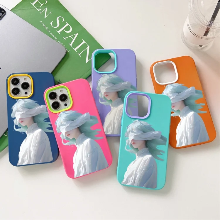 Blindfold Girl PC Hybrid TPU Phone Case, For iPhone 15 Plus, For iPhone 15