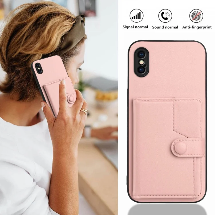 Button Card Bag RFID Anti-theft Phone Case, For iPhone XS / X, For iPhone XR, For iPhone XS Max