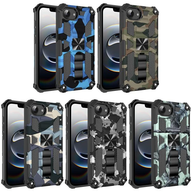 Camouflage Armor Kickstand TPU Hybrid PC Magnetic Phone Case, For iPhone 16e, For iPhone 16 Pro Max, For iPhone 16 Pro, For iPhone 16 Plus