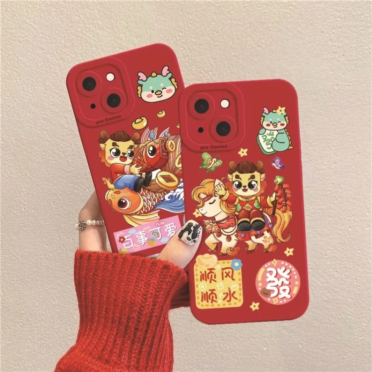 Cartoon Year of the Dragon Chinese Style Silicone Phone Case, For iPhone 15 Pro Max, For iPhone 15 Pro, For iPhone 15 Plus, For iPhone 15, For iPhone 14 Plus, For iPhone 14, For iPhone 14 Pro…