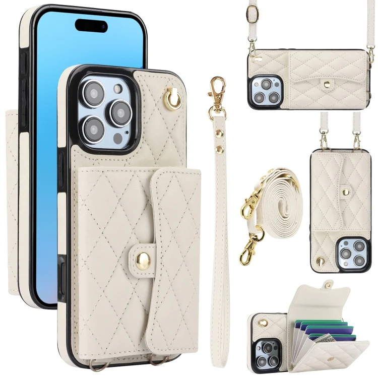 Crossbody Rhombic Horizontal Wallet Leather Phone Case, For iPhone 16 Pro Max, For iPhone 16 Pro, For iPhone 16 Plus