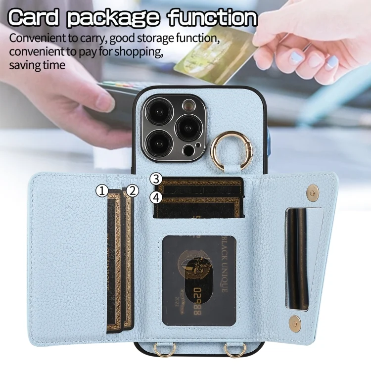 Crossbody Ring Wallet Leather Back Cover Phone Case, For iPhone 15 Pro, For iPhone 14 Pro, For iPhone 15 Plus