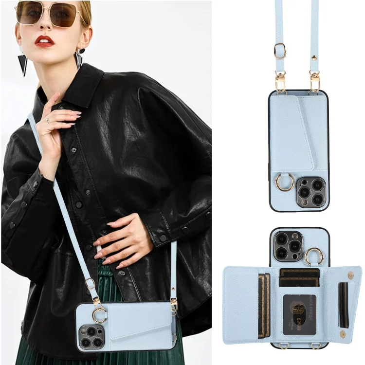 Crossbody Ring Wallet Leather Back Cover Phone Case, For iPhone 14 Plus, For iPhone 15 Pro Max, For iPhone 14