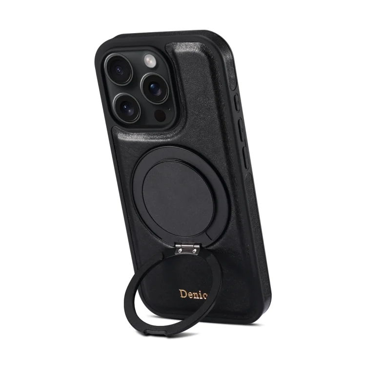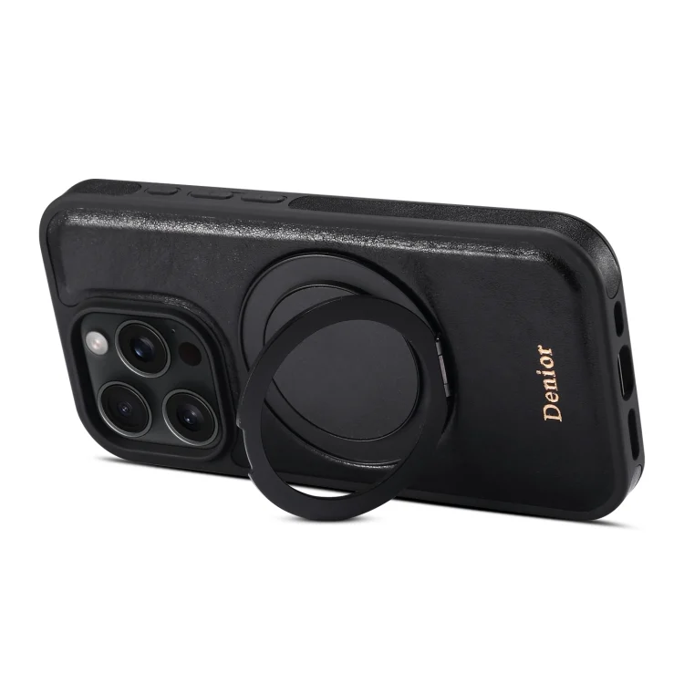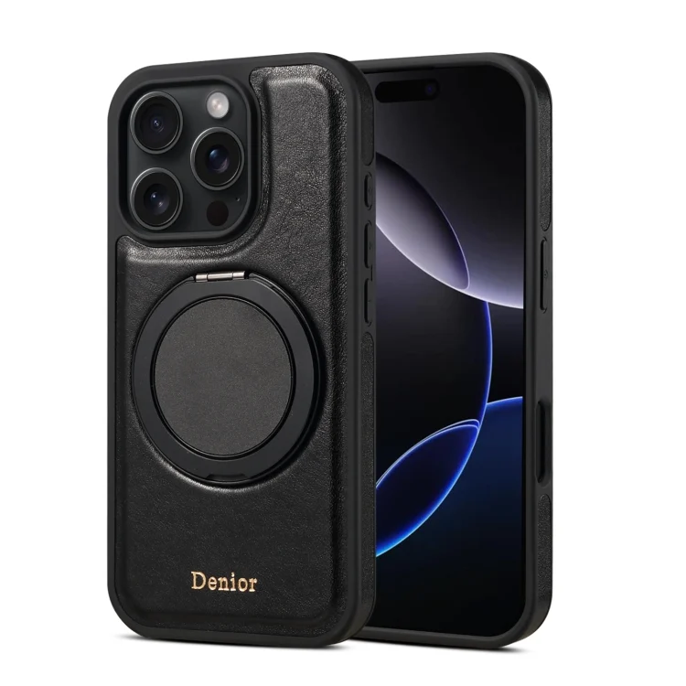 Denior A17 Genuine Leather Gear Magnetic Holder Phone Case, For iPhone 16 Pro Max, For iPhone 16 Pro, For iPhone 16 Plus, For iPhone 16