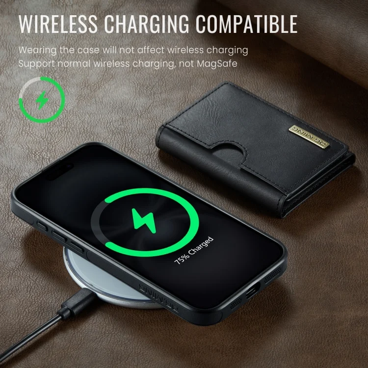 DG.MING M6 Series RFID Tri-fold Card Bag Removable Leather Phone Case, For iPhone 16