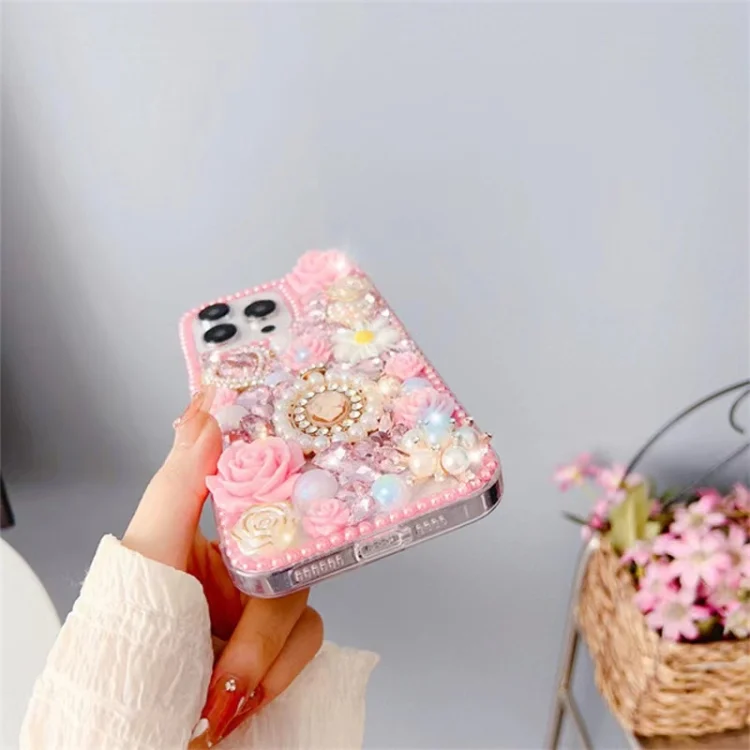 Diamond Inlaid Rose PC Phone Case, For iPhone 14, For iPhone 14 Pro, For iPhone 14 Pro Max, For iPhone 13 Pro Max, For iPhone 13 Pro
