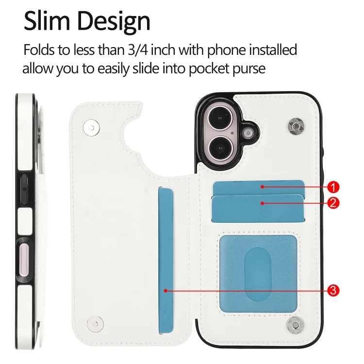 Double Buckle Crazy Horse Texture PU Phone Case, For iPhone 16 Plus, For iPhone 16