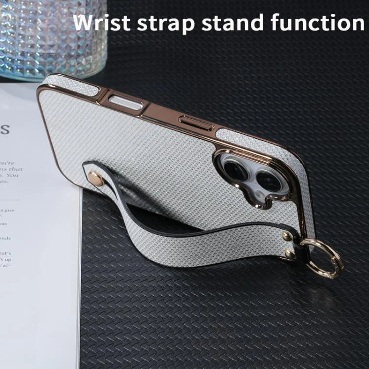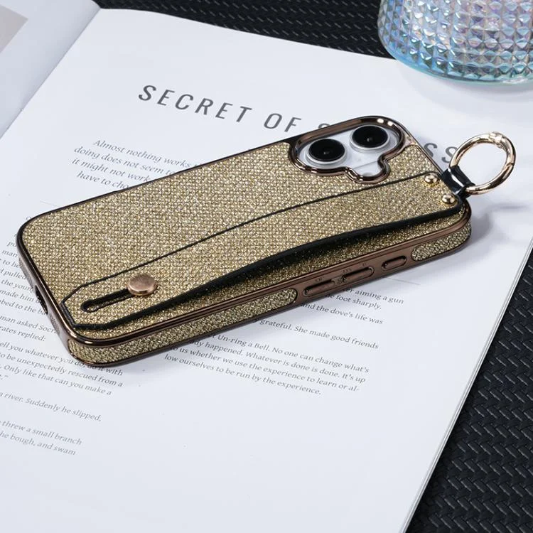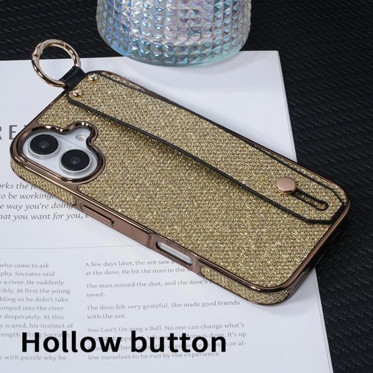 Electroplating Loose Powder Wristband Holder Phone Case, For iPhone 16 Plus, For iPhone 16
