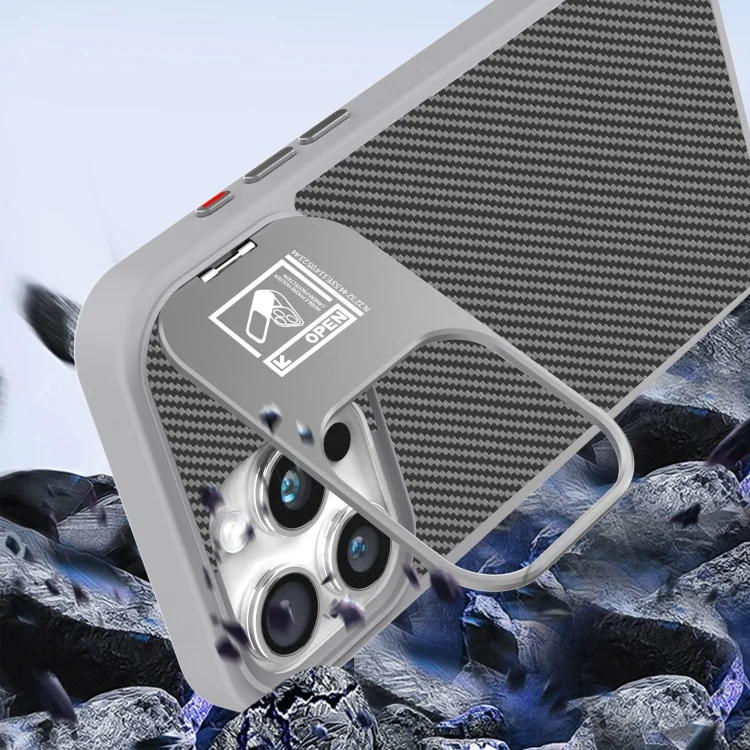 Folding Holder Carbon Fiber MagSafe Phone Case, For iPhone 13, For iPhone 12, For iPhone 12 Pro Max, For iPhone 12 Pro