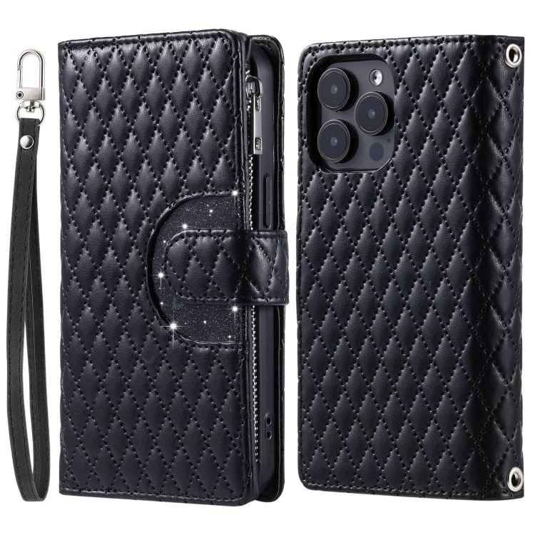Glitter Lattice Zipper Wallet Leather Phone Case, For iPhone 14 Pro Max, For iPhone 7 / 8 / SE 2022, For iPhone 13 Pro Max, For iPhone 13 Pro, For iPhone 13