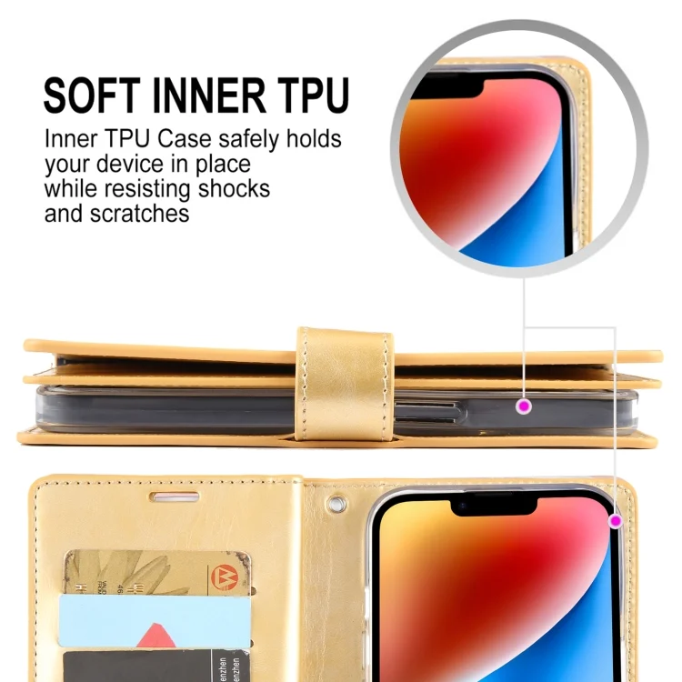 GOOSPERY MANSOOR DIARY 9 Card Slots Leather Phone Case, For iPhone 15, For iPhone 15 Plus