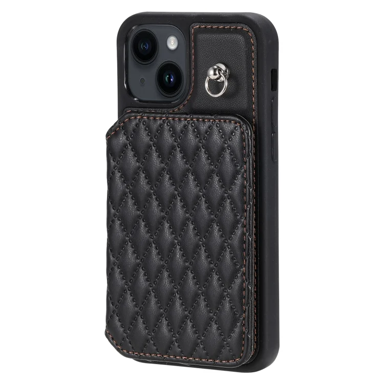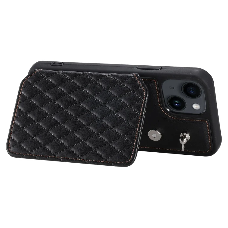 Grid Texture Card Bag Phone Case with Lanyard, For iPhone 14, For iPhone 14 Pro, For iPhone 14 Pro Max, For iPhone SE 2022 / 2020 / 8 / 7