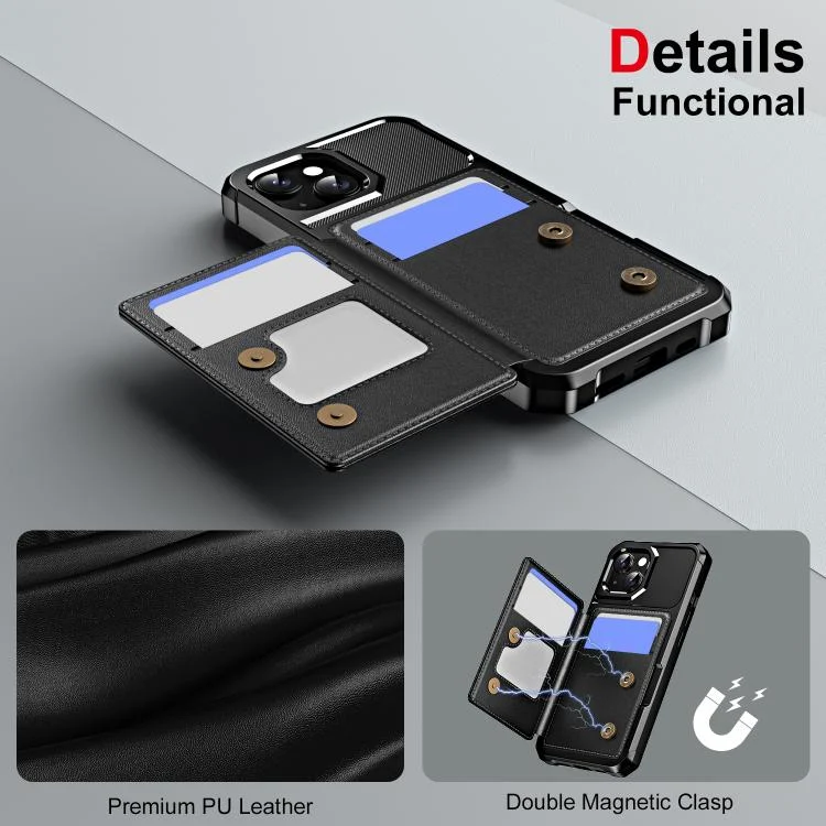 4. Magnetic Closure: The strong metal magnetic snap can confirm your cards (credit / debit / ID cards) and cash safety and security;