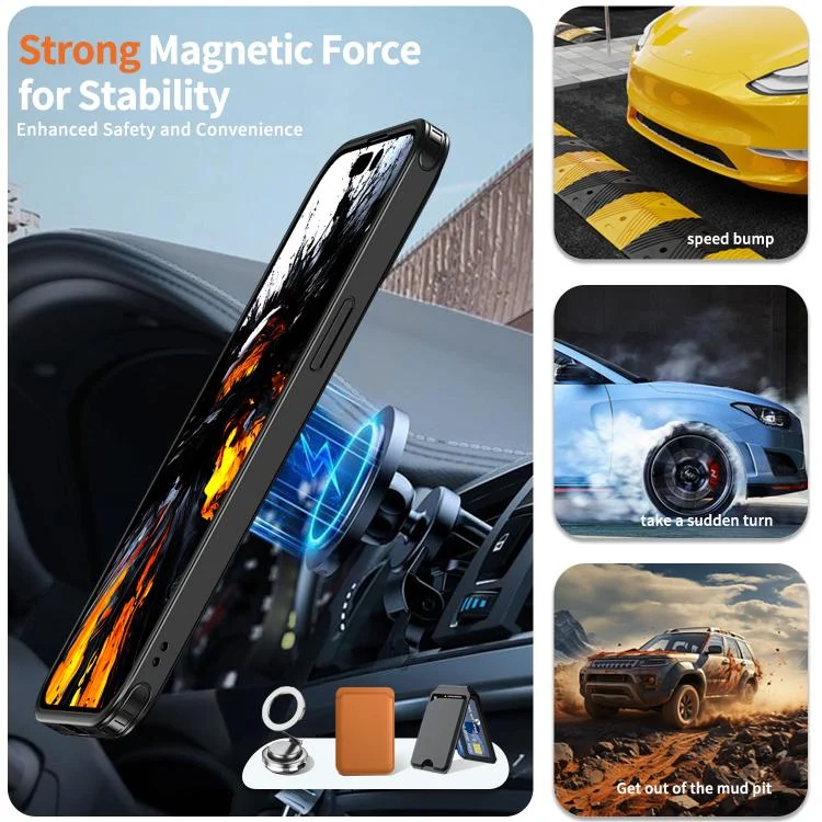 6. MagSafe Compatible: Built-in magnetic ring supports MagSafe wireless charging and magnetic accessories such as car mounts and MagSafe chargers. (MagSafe wireless charging only suitable for the phone that support wireless charge)