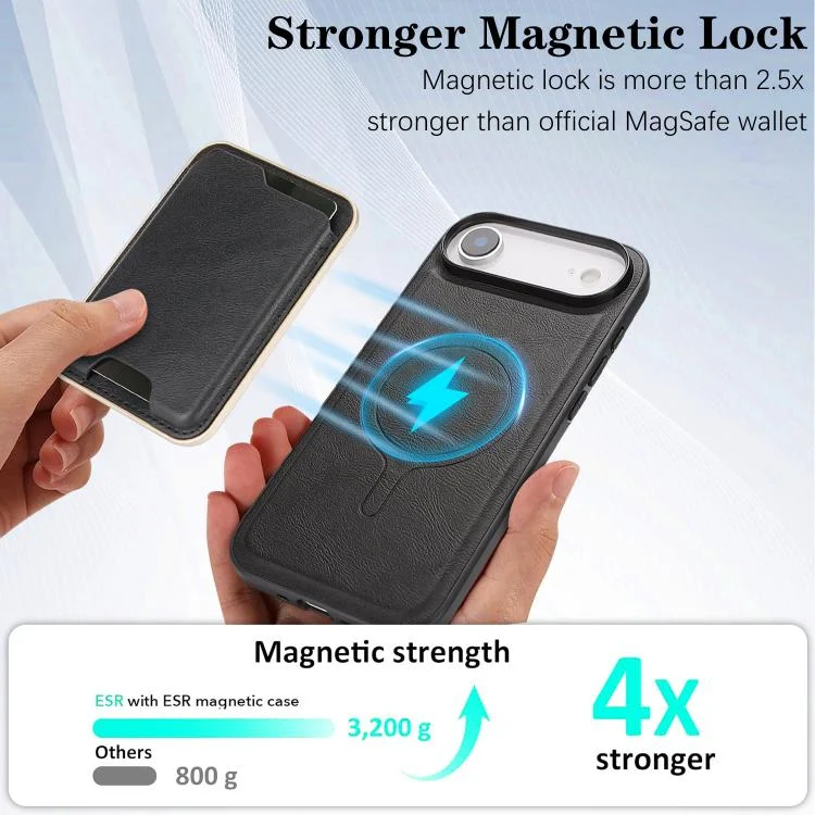 1. Minimalist magnetic leather wallet, supports Magsafe accessories and wireless charging cutting board, stronger magnetic lock is more than 2.5 times stronger than the official MagSafe wallet